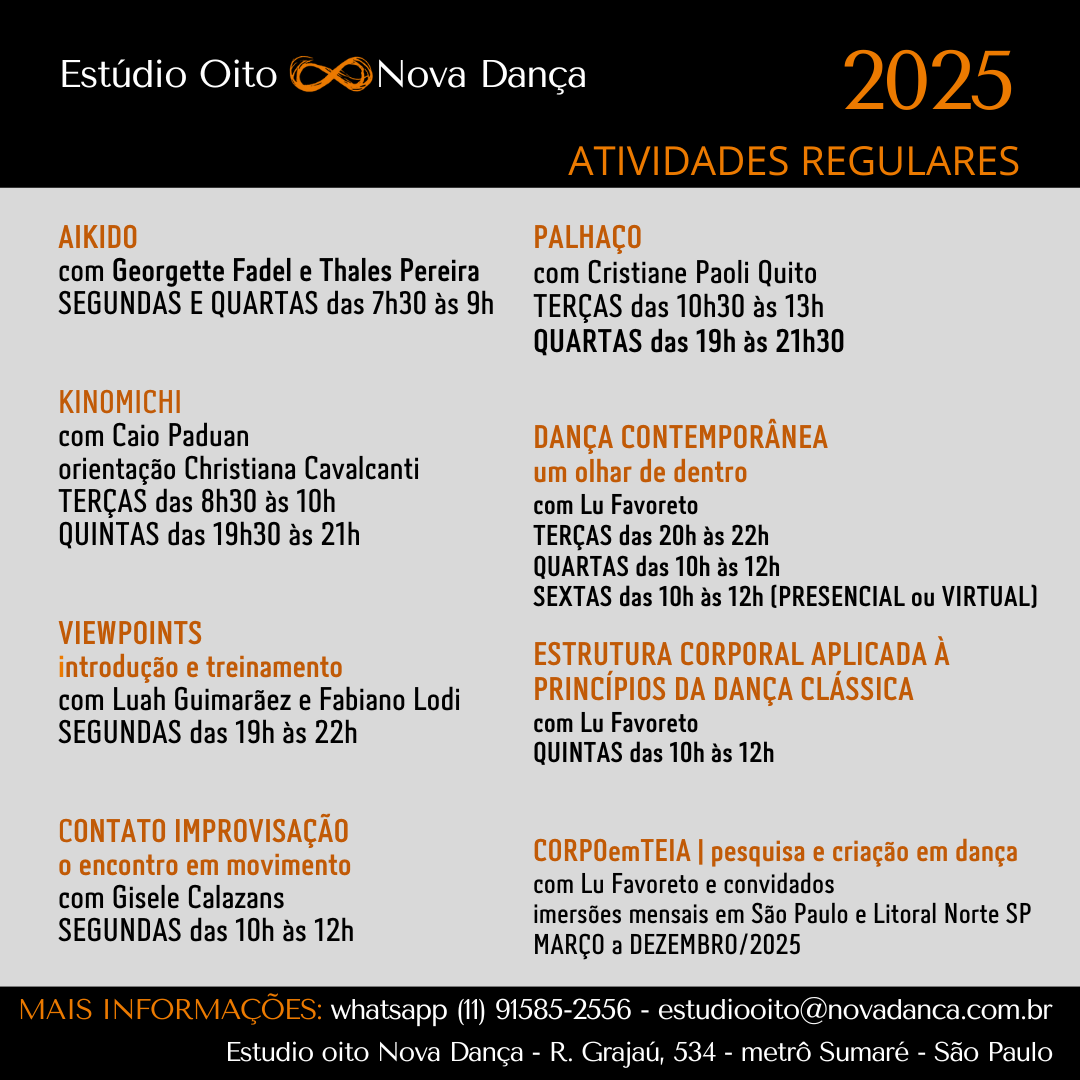 Criada e dirigida por Lu Favoreto em 2000, a Cia. Oito Nova Dança tem como elemento primordial de investigação a relação entre estrutura corporal, movimento vivenciado e obra cênica. Para processar tal investigação a Cia. adota uma abordagem corporal que tem como princípio técnicas somáticas fundamentadas principalmente nos métodos de Klauss Vianna e da fisioterapeuta francesa Marie Madeleine Bézie